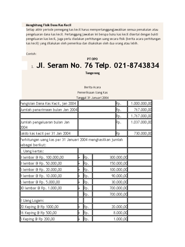 Setelah membentuk kas kecil, prosedur selanjutnya adalah pemakaian atau penggunaan dana kas kecil. Beserta contoh transaksi yang menggunakan dana kas kecil. Kumpulan contoh soal rekonsiliasi bank beserta jawabannya. Sistem imprest di dalam sistem ini jumlah dalam rekening kas kecil selalu tetap, yaitu sebesar cek yang diserahkan kepada kasir kas kecil untuk. Dana kas kecil ini akan diserahkan kepada seorang kasir yang khusus memegang petty cash, yang akan mempertanggungjawabkan setiap pengeluaran.